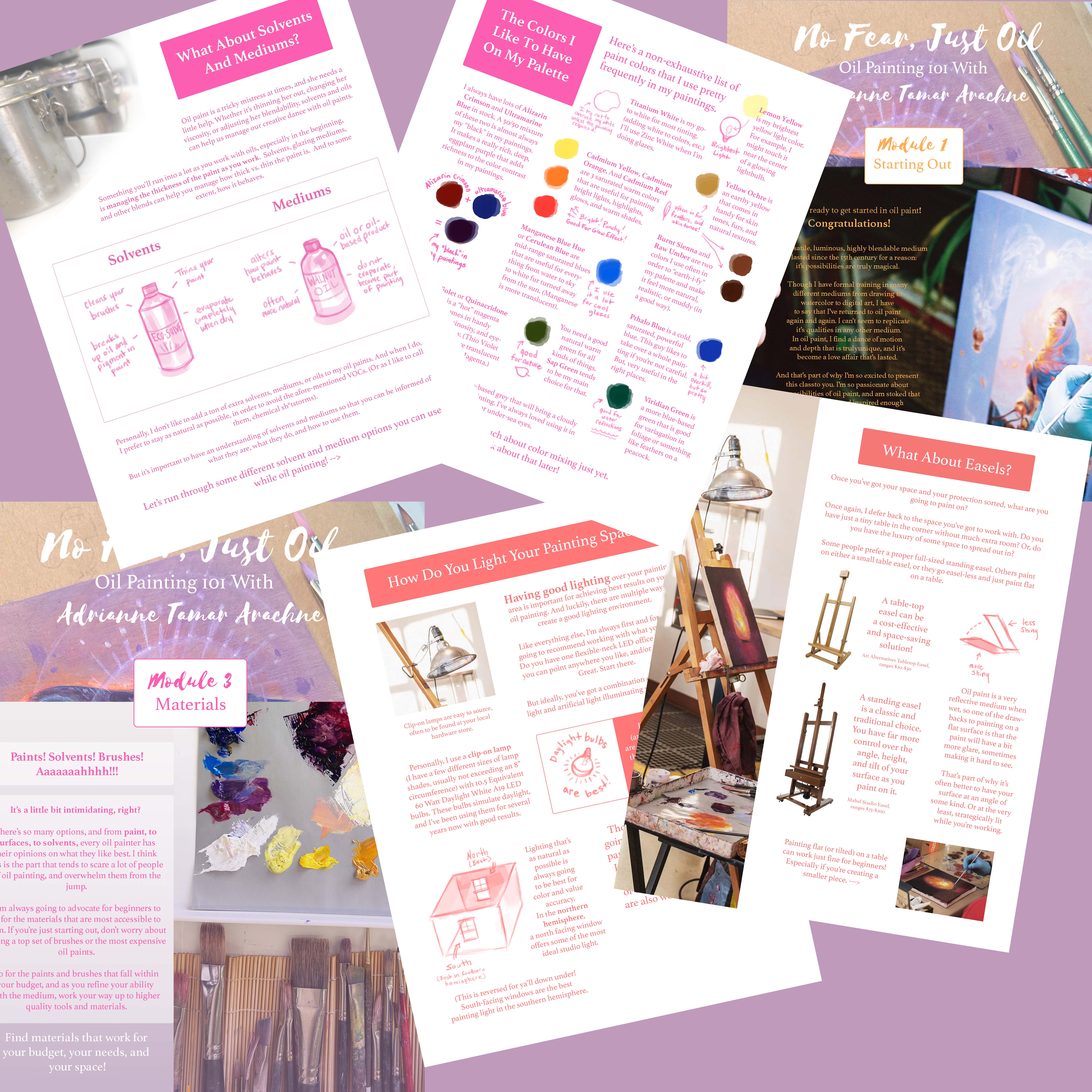 Oil is a luminous form of painting that has stood the test of time. But these days, it can be a little intimidating to begin. Many artists are curious about oil paint, but are wondering: Is it toxic? What kind of solvents do I need? Doesn't it take forever to dry? Should I wear a bio-hazard suit? Adrianne has designed a course to not only answer these questions, but to open up the wonderful world of oil painting to beginners in an accessible and fun way! If you're new to oil painting, you need look no further than here to find everything you need in one place. From materials to painting techniques to varnishing and cleaning, here you you will find everything you need to get started. Are you ready to dive into the colorful world of oil painting? Join us and embark on an empowering artistic journey today!